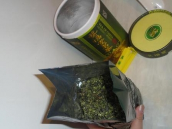 Хочу похвастать чаем.Покупала зеленый чай . Очень прочная упаковка, не деформировалась и не помялась. Когда открыли тубу внутри оказался пакет с чаем(упаковка вакуумная) + зажим, что приятно удивило.А то обычно когда покупаем чай приходиться скрепки на него одевать. А тут такая нужная штука. Чай ввиде туго скатанных листиков. Пахнет как мне показалось лугом. заварился светло желтый. По вкусу почему то напомнил клевер. Приятный и свежий вкус вкус.