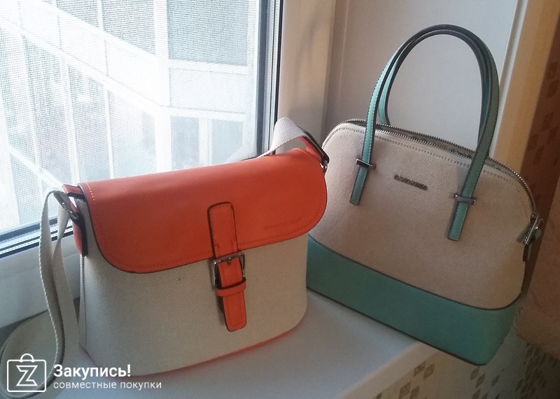 Получила свои сумочки. арт. 5033-1 Orange и арт. 5073-2 Apple-Green. Почему-то мне думалось, что мятная будет чуток побольше (среднего размера), а она такая же малютка, как и планшетик. У обеих внутри карман на молнии, два кармашка под телефон и мелочи, яркий веселенький подклад))) Сумочки очень летние, поднимают настроение. Леночка, спасибо большое!!!