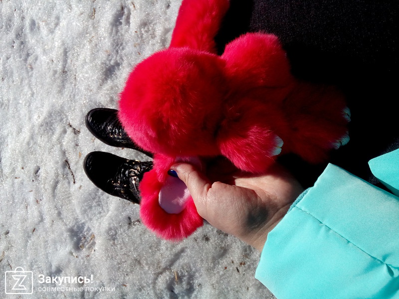 Про кролика писать не буду все и так уже сказано, перчатки с митенками супер, теплые, красивые, стразы крепко сидят, бусины на заклепках намертво приделаны берите не пожалеете. У меня размер перчаток 6²½, внутри меховой начес, они хорошо тянутся.