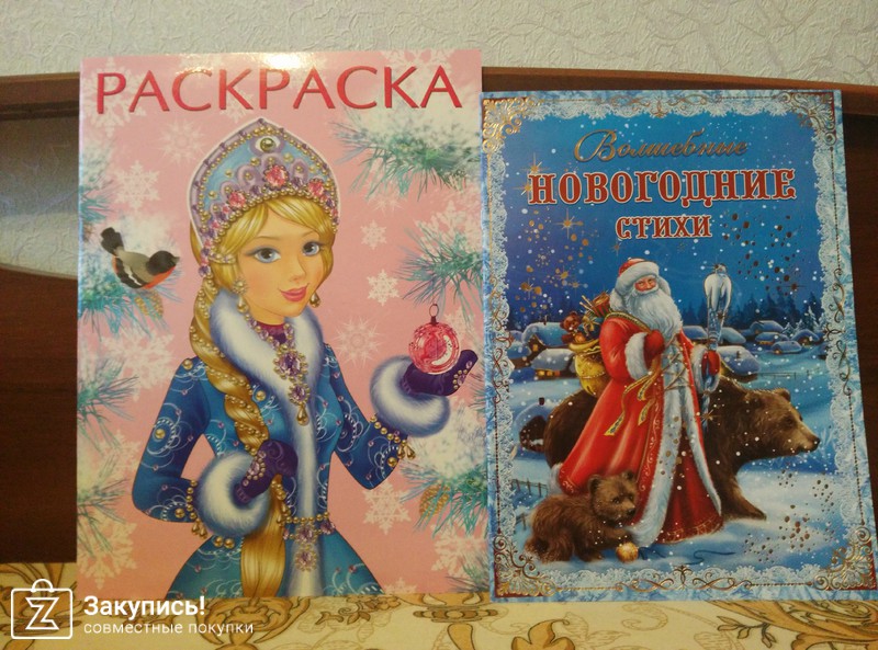 Ещё брали книги, раскраски, в тонкой книге Новогодние стихи картинки понравились. Серию у Росмэн \"Все лучшие сказки\" почти всю собрали, недорогая, большой формат, где то есть нормальные иллюстрации, где то компьютерная штамповка, попадается сокращенное изложение,читаю заранее отзывы на др.сайтах. Спасибо за закупку.