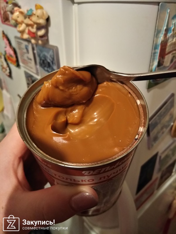 забрав сгущенку, сразу стала пробовать--с первой ложки вспомнила вкус детства, на все праздники варили сгущенку (4 часа в скороварки и если станешь открывать горячей все стены и потолок , лицо было в липкой , коричневой варенке)и пекли вафельный торт, слои промазывали сгущенкой ==умяв третью часть банки(а она огромная), я вспомнила ,что сижу на диете(с утра),ВСЕМ СОВЕТУЮ, ВКУСНАЯ/ классная удобная крышечка, конечно закажу еще
