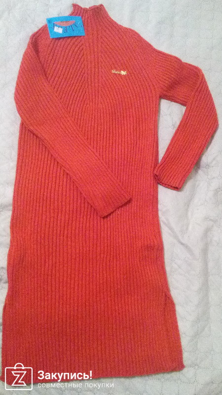 Платье 70%шерсть 30%акрил, плотное, действительно на 42-46, достаточно длинное при моём росте 165 см мне прикрывает колени наполовину.По бокам разрезы. Цвет заявлен бордо по факту красный, либо коралл но не бордо- это минус. В остальном все как на картинке. Закуп был первый, все конечно долго.