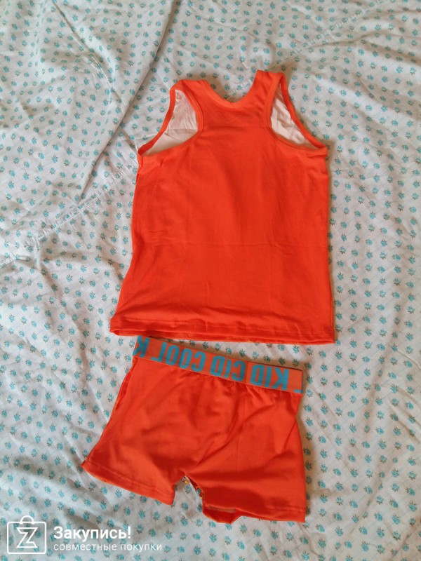 Красивый комплект. Правда оранжевого цвета. Размер 4, хорошо сел на сына 3 лет. Сын крупный. Синтетика, приятная на ощупь.