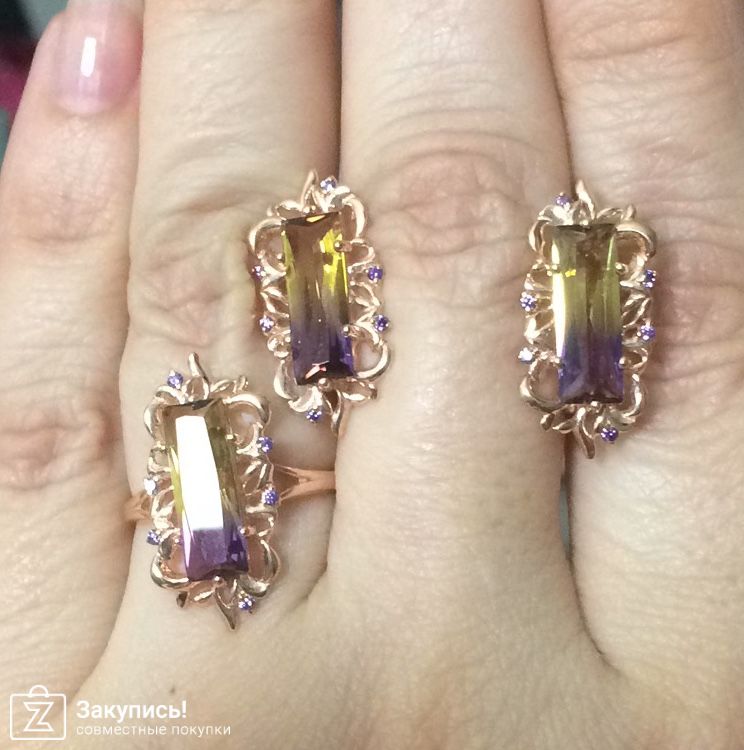 Добавлю комментарий. Серьги к данному кольцу (на сайте их нет) выкупили лично у фабрики. Обошлось это нам в 1500 руб с пересылкой...... Это к вопросу о том, насколько выгодно покупать здесь. Но очень хотелось серьги. Поэтому других вариантов у нас не было. (серьги очень красивые. На сайте есть только с фиолетовым камнем).