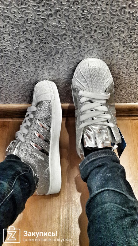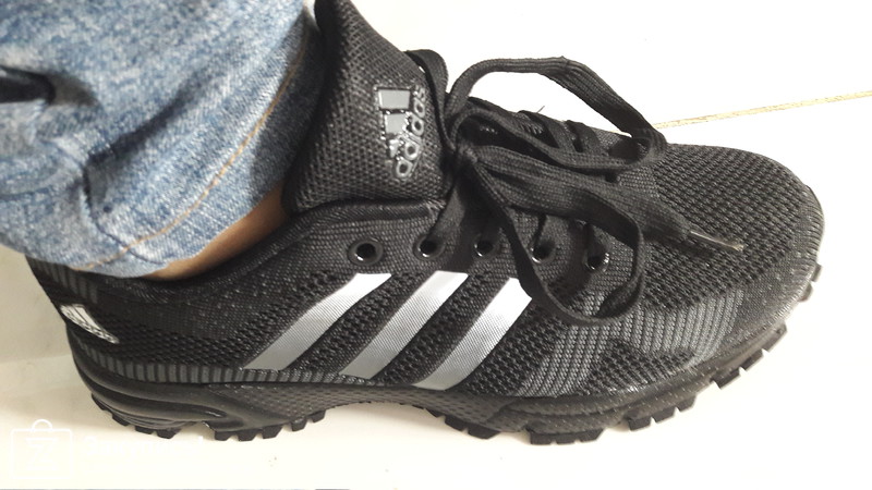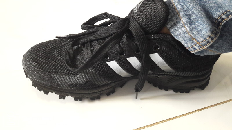 Кроссовки Адидас. Если бы не запах и не этикетки под язычком, то можно принять за оригинал. Цена вообще 700р. На ногу 24.5 взяла 38. Мне норм.