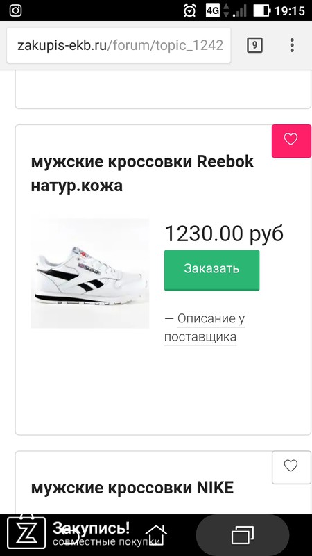 Заказывала женские кроссовки Reebok, натуральная замша, Качество отменное, очень довольна, буду заказывать еще