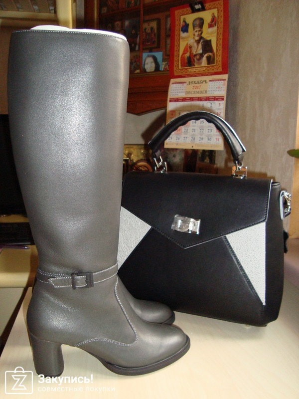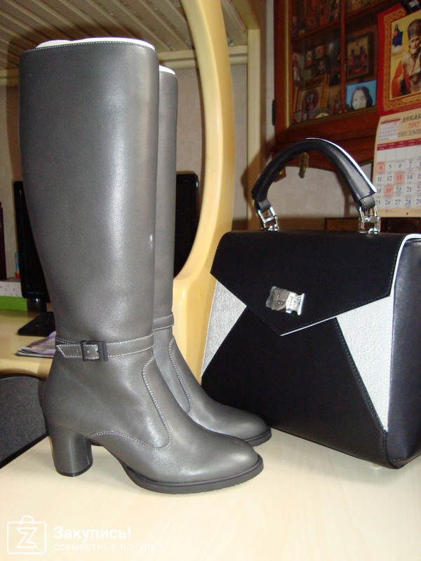 Ааа, как я довольна! Сумка шикарная, только кажется мне немного не по габаритам. Пока подумаю, пристраивать не буду) Мне ещё же пальто надо:) Сапоги 36 размер, конечно немного велики (мой р-р 35),но то, что мне было нужно. У меня подобные такие зимние, каблук 6 см, но очень удобная колодка! СпасиБог!!!