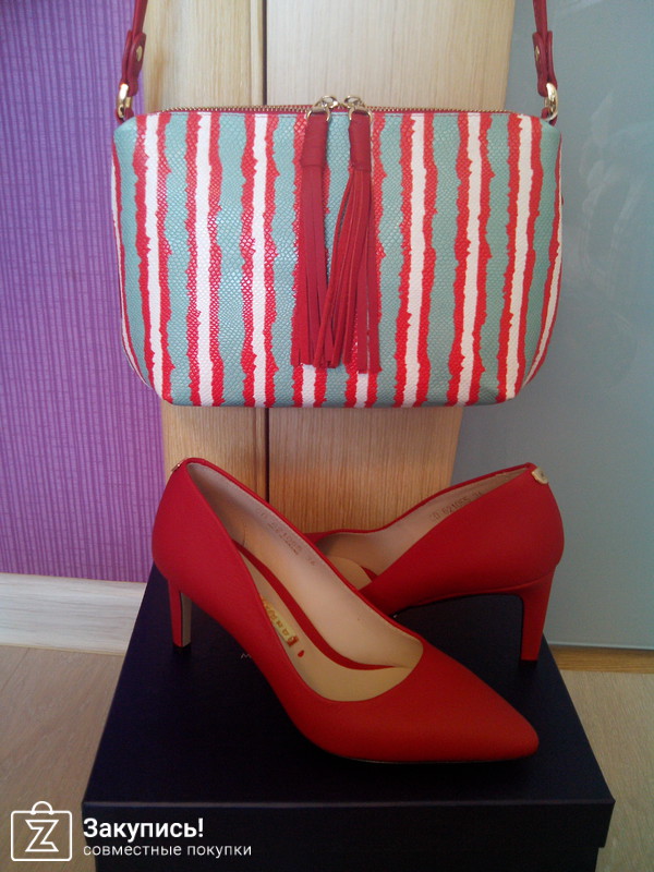 Первые лодочки в моём гардеробе! Очень довольна! Туфли красные р-р 35 по сетке 23,1 см, у меня по стельке где-то 22,7см. Мне подошли. Сумка очень оригинальная, все завидуют на работе