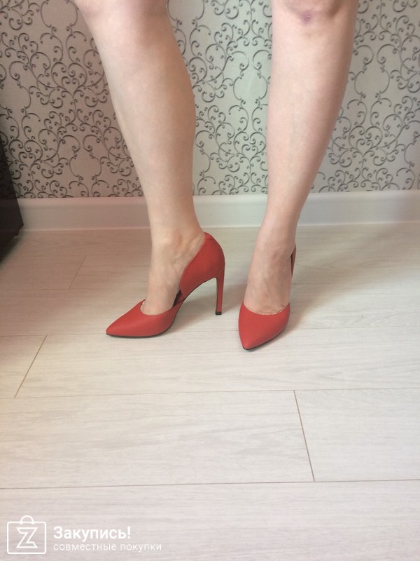 Красные матовые туфли-просто огонь! Но надо снова учиться ходить на каблуках! Они шикарные, кожа мягкая, красивая. Мне показались даже немного широковатыми на мою узкую ногу, но думаю выпадать из них не буду!
