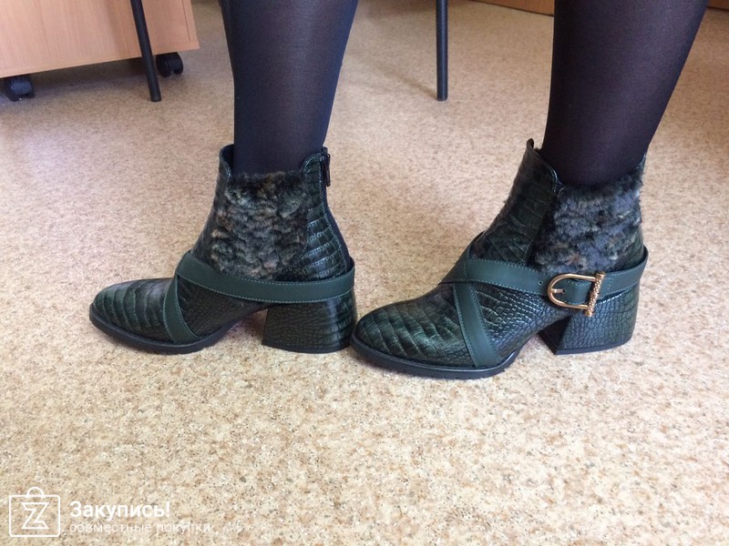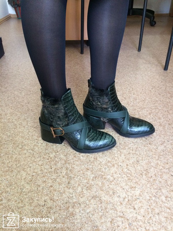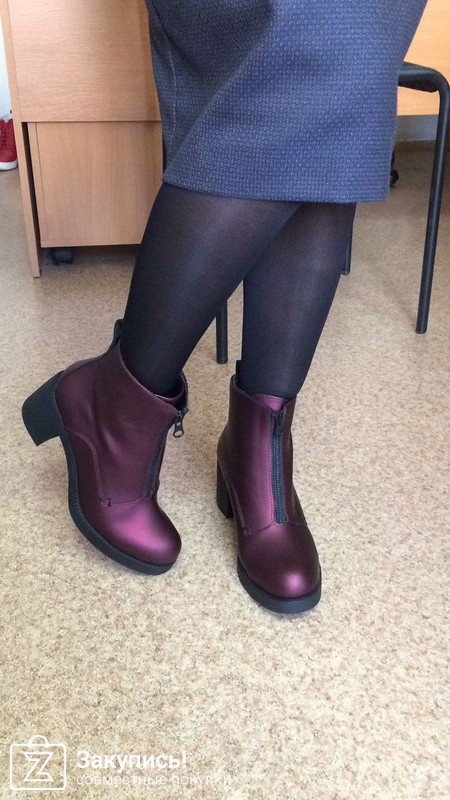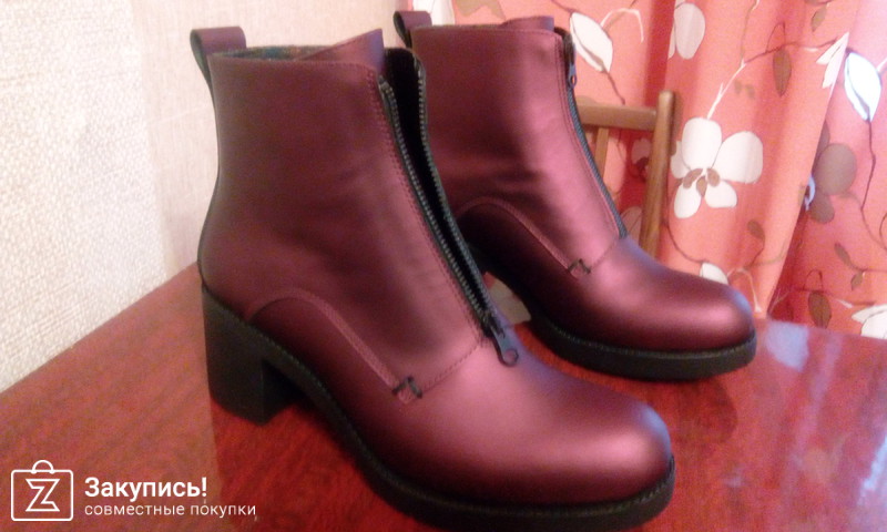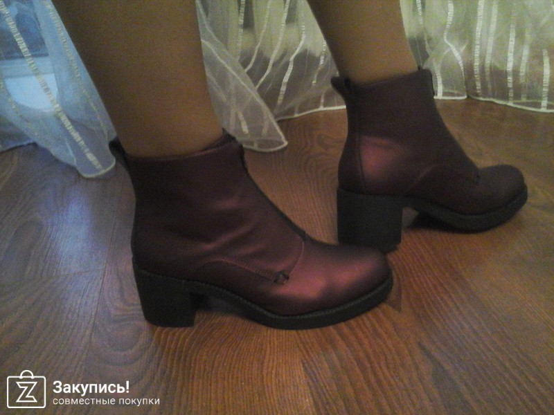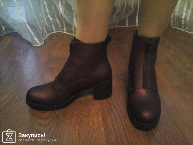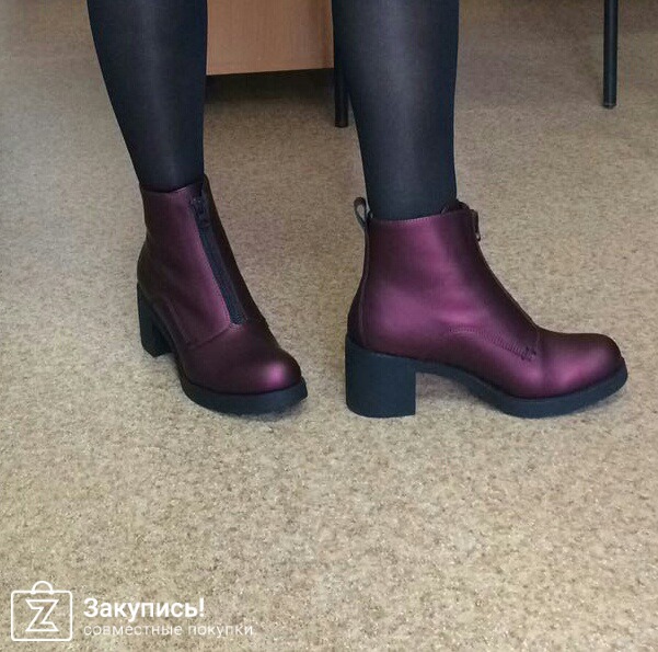 2. Инжирные ботинки с замком впереди. 37 размер. Улет. Фактура кожи очень крутая: матовая, с отливом. Кто пользуется гель-лаками - это как лак кошачий глаз покрыть матовым топом - примерно такой эффект матового мерцания. Цвет оч красивый. О чем писали девочки: в щиколотке они дубовые, при ходьбе упираются в ногу. Но! у меня ноги худые, нога немного в стакане в них, поэтому я не ощущаю особого дискомфорта. сама колодка удобная. Они подойдут точно на стандартный или узкий 37 размер, т.к. у меня впереди есть хороший запас, но зато косточки встали так, что на них по бокам не давит, а для меня это главное. Поэтому этот запас вереди меня не смущает, нога не болтается туда-сюда.