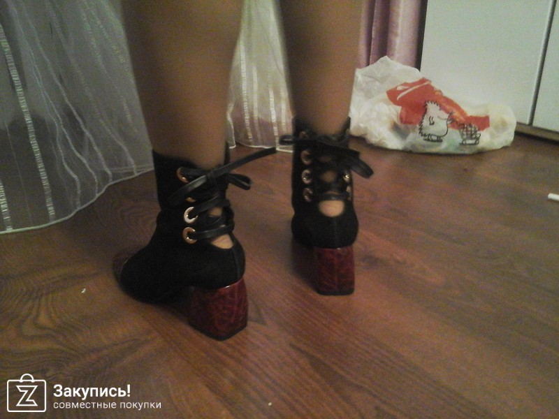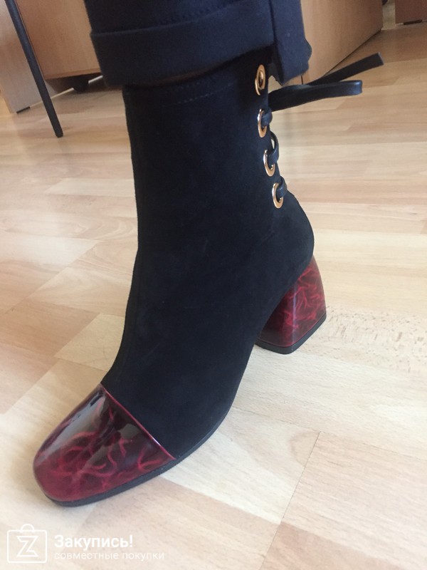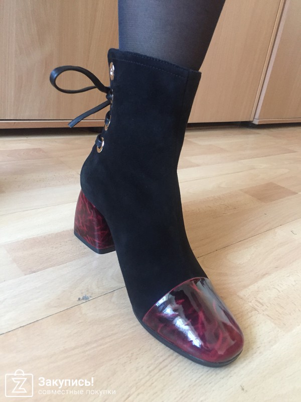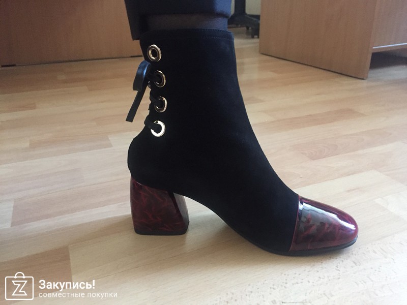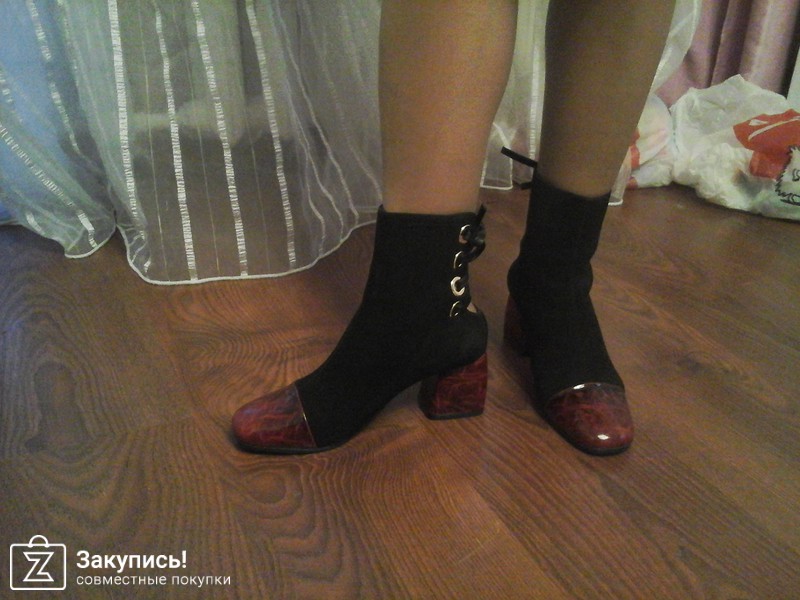 Ботиночки с бордовым носком и шнуровкой на пятке.... несколько смутили меня тем, что их чтобы одеть приходится расшнуровывать и нога туда еле залезает... короче неудобно!