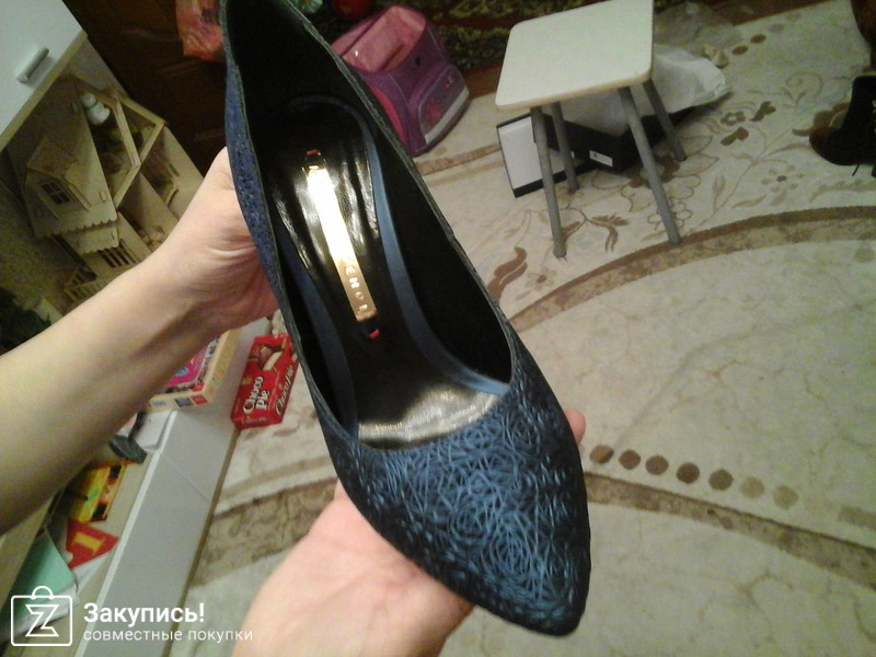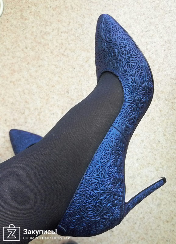 4. Синие лодочки с отделкой под розочки. АААААААААА. ваще огонь!!!!! Короче, как вас не запутать.... Я поняла, что на мой 36 надо брать 37 узконосую обувь, но так как эти туфли заявлены маломерки (то есть надо брать на размер больше), я и взяла 38, так как летние с такой колодкой в 37 размере пришлось разнашивать: замша разносилась, а кожа не очень. Поэтому я решила себя избавить от мук разнашивания, и заказала побольше. В итоге - вообще ничего нигде не давит, но слегка большеваты по длине стельки, видно, что между пяткой и задником есть небольшой запас. Сейчас у меня ноги отекшие, не вываливаюсь, но отек спадет - пятка будет вылетать. Опять же НО: стелька или полустелька однозначно спасет ситуацию.