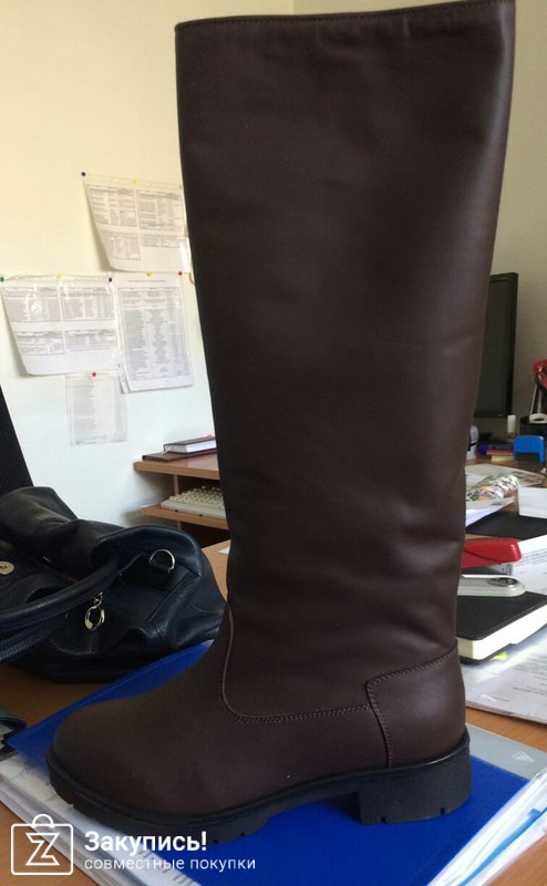 3. Коричневые беговые сапоги-трубы из матовой кожи. Выделка кожи опять же обалденная. Я брала еврозиму, слой меха не толстый, думаю, подойдут максимум до -15 градусов. Тоже 37. Очень комфортные, еще войдет носочек. Кожа по голенищу мягкая, ничего-нигде не давит, они без замка, за счет этой мягкости оделись очень хорошо.