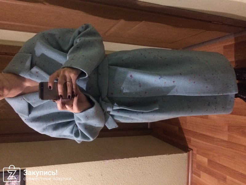 Это блеск, космос, фантастика в одном флаконе. В принципе,все мои впечатления после примерки сохраняются. У меня пальто Кокон расцветка \"голубые ели\", которая мне досталась по счастливой случайности. (Спасибо Юле!!!) Вживую цвет голубее, чем на фото в инет магазине. Мой рост 156, размер 40-42. Их размер One size по данным магазина идет на 42-46. Его примерила моя коллега с размером 46-48. Ей тоже хорошо,но менее оверсайзно. По моим ощущениям носить его буду до 0 градусов, причем, если ветер, мне надо надевать под него что-то очень-очень теплое. Моя ткань от носки с поясом приминается, поэтому,если снять в помещении,на ткани остаются заломы, по составу 90% шерсти, оно и ощущается. Удобные карманы, красивущая подкладочная ткань. Рукава мне чуть длинноваты, попробовала загнуть наружу,как советовали мне в розничном магазине, не оч понравилось, сегодня ходила так))