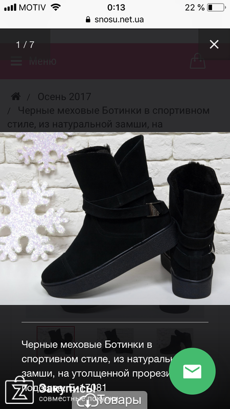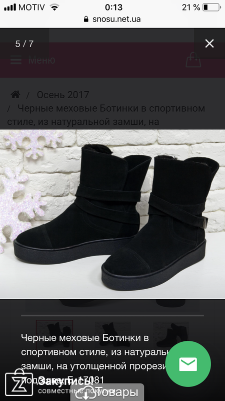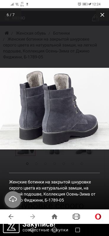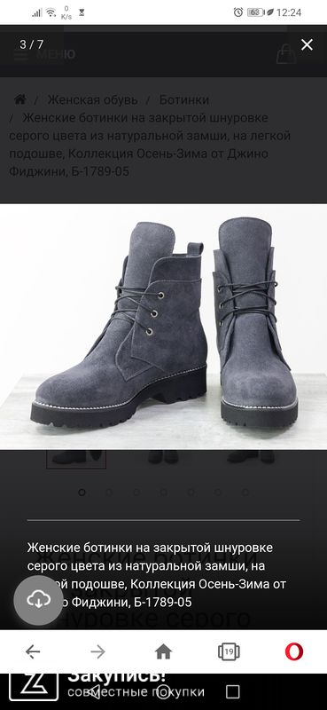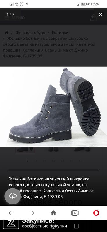 Заказывала ботинки Б-1789 в серой замше и на другой подошве, потому как родная подошва очень скользкая для зимы. Сделали подошву из эва с серебристые кантом. Ботинки очень понравились, мягкие, лёгкие. Ношу 36 размер и заказала 36 размер. Сидят отлично за счёт удлиненного носа. По артикул можно найти их на сайте. На фото выглядят в точности как в реале.