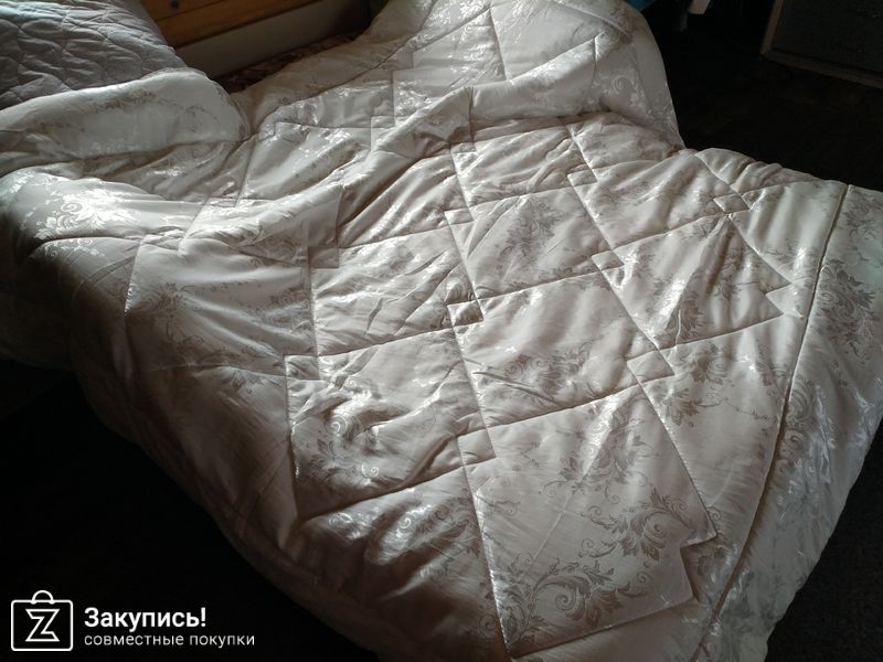 Одеяло очень большое, лёгкое, теплое ( использовала всю зиму в частном доме, в комнате у нас 19-20 градусов), не шуршащее, очень качественное и красивое!