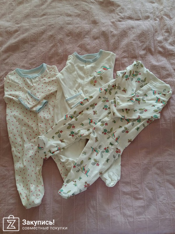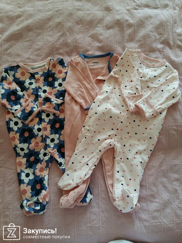 Следующее комбинезоны-слипы для маленькой. Качество пошивки и хлопка порадовало, сшиты под брендом mamas&papas. купила на вырост на 3-6 месяцев, пока большие. Цена для комплекта из трех штук 1155-вообще класс. Буду еще заказывать