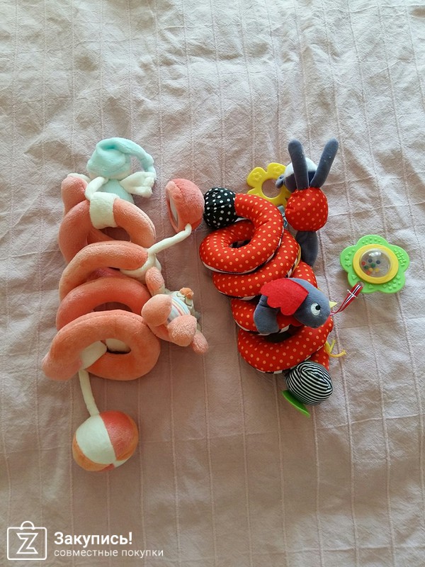 Игрушка на коляску. Сшиты хорошо. Яркие, соответствуют фото на картинке. Цена 371 и 432