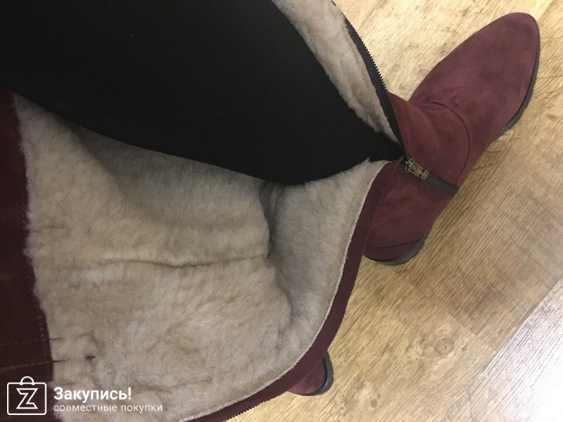 На самом деле когда заказывала думала, ну за 4 т будут сапожки на сезон, ...А в итоге, качество классное, замша мягкая, без посторонних запахов, мех заказывала не натуральный, но он прям такой приличный. На стопу 24.5 см заказала 38 чуть запасик есть для носочка, объем голени шили как на 37, так как нога у меня худющая)) Цвет более насыщенный, чем на фото. Вообщем я довольная как слон!!!! Наташа, лови воздушные поцелуйчики ****
