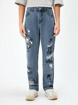 Джинсы, утепленные флисом. Посадка comfort fit – свободный крой брючин. Эластичный пояс со шнурком.