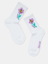 Детские носки из хлопка, с декоративным бортом, с рисунками. Для девочек.