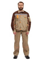 КОС121-363 Костюм "РОЛЬФ" куртка/полукомбинезон, цвет: БЕЖЕВЫЙ/КОРИЧНЕВЫЙ