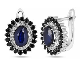 Серьги, арт.657548 Серебро Серебро 925, 4,44 гр., сапфир корунд , шпинель нат.
