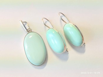Девочки, заказывала себе набор с бирюзой, на фото он слева, но решила не оставлять, мне очень понравились камни, когда выбирала, из каких именно хочу, но, как оказалось, удлиненный камень не мой вариант, мне нужен округлый квадрат или круг. Пристраиваю. Вес набора примерно 7 гр. Цена 2000 руб за грамм с оргом, точнее обо все напишу в личном сообщении. Бирюза природная, натуральная.
