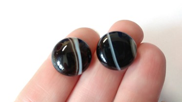 Кабошон черный полосатый агат, круг, 16,2 мм, 2 шт