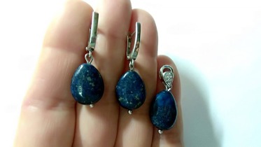 Гарнитур с натуральным лазуритом,камень 15*19 мм.