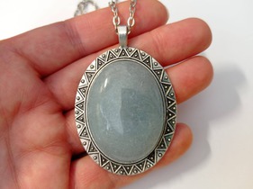 Кулон с натуральным голубым халцедоном, в ассортименте (разное обрамление камня), размер 40*30 мм, ювелирный сплав, на цепочке