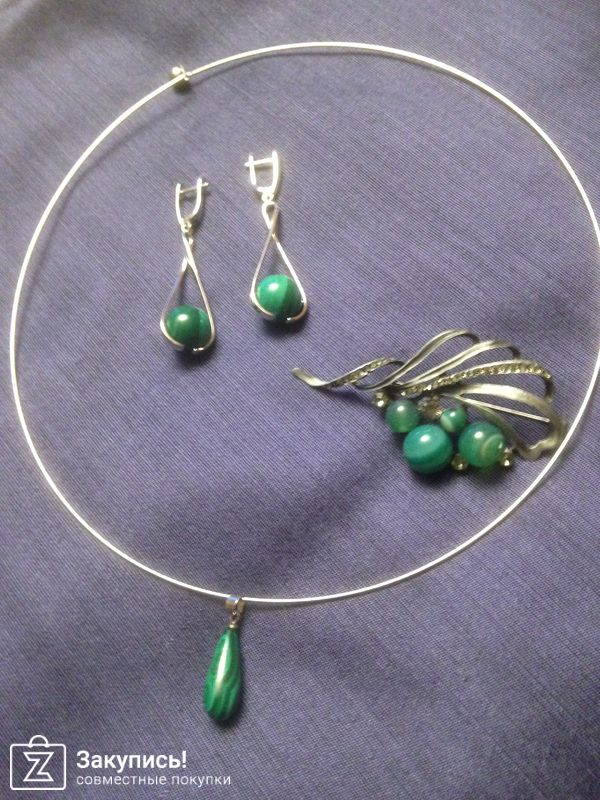 Серьги и кулон с малахитом, брошь с зеленым агатом и ободок для кулона. Очень красиво, качественно, камушки прекрасные. Это для себя ( под изумрудный палантин \"Переливы шелка\" из другой закупки нашего организатора). Отличная тема, четкая организация, масса удовольствия. Уже сделала заказ опять, сопротивление бесполезно )) Обязательно куплю на подарки к Новому году любимым подругам и близким. Благодарю!