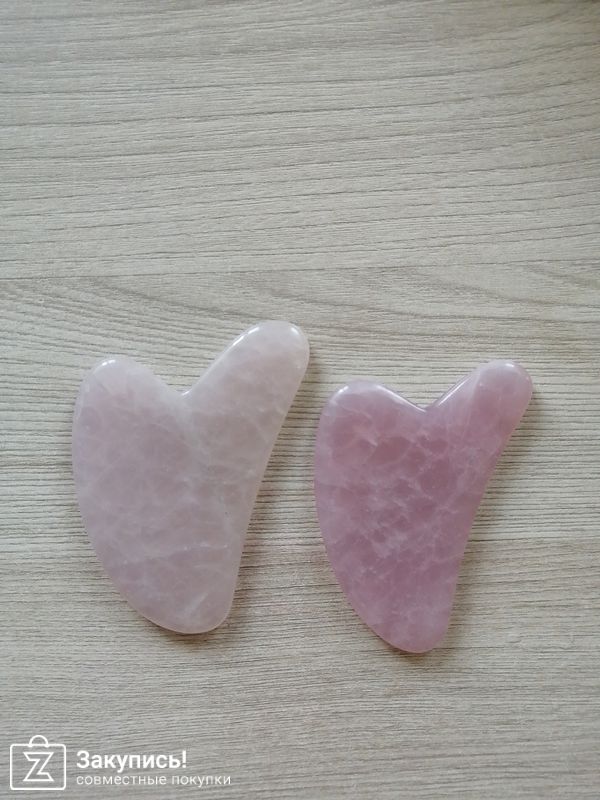 Получила скребки из розового кварца. Тактильно приятные, уже попробовала сделать массаж, охлаждала в холодильнике. Очень понравились. Скребки немного отличаются по размеру.