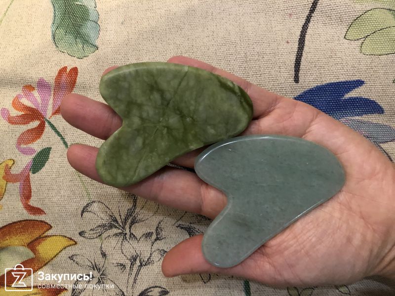 С гуашей познакомилась давно уже, очень нравиться с ним делать массаж . До этого покупала в инстаграмме розовый кварц, здесь взяла в три раза дешевле гуаша из зеленого кварца и жадеита. На вид один скребок разного цвета, но нет оба разные. Кварц более гладкий, лёгкий чтоли, жадеит более тяжелее кажется более глубже с нмм делаешь массаж. Вообщем зелёный кварц я бы рекомендовала для новичков, а жадеит уже для дальнейшей проработки)