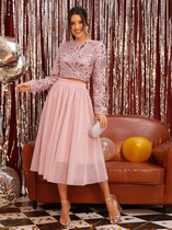 Блестящий топ с цветочным принтом и сетчатой ​​юбкой