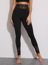 Леггинсы на талии с кружевной вставкой