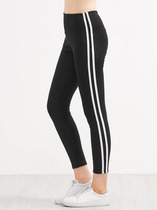 Черные контрастные полосатые леггинсы