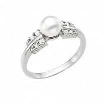 Кольцо с искуственным жемчугом родированное серебро 925*