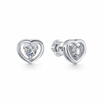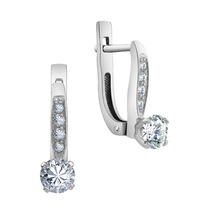 Серьги с фианитом родированные серебро 925*