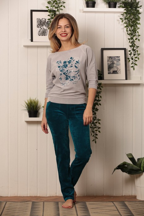 Костюм для дома и отдыха из велюра высокого качества. Брюки прямые.