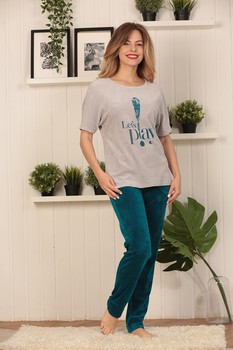 Костюм для дома и отдыха из велюра высокого качества. Модель сочетает в себе безупречный крой, интересный принт, модную цветовую гамму.