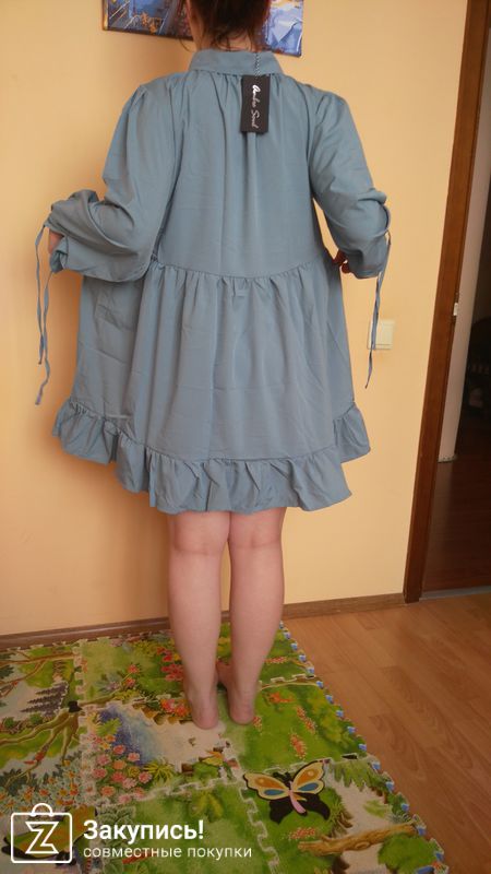 Тоже буду вшивать резинку:) Это платье самой оценено на 7 баллов) Оригинально и молодежно) Завязки на рукавах тоже рассчитаны на бооольшие запястья))) и там надо мне будет ушивать)