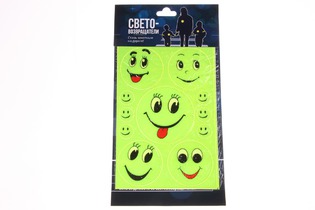 Наклейки светоотражающие для детей Смайлы на европодвесе/ТОЛЬКО 3