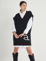 Платье-жилет с V-образным вырезом и интарсией, черное