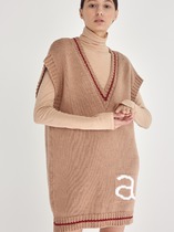 Платье-жилет с V-образным вырезом и интарсией, песочное