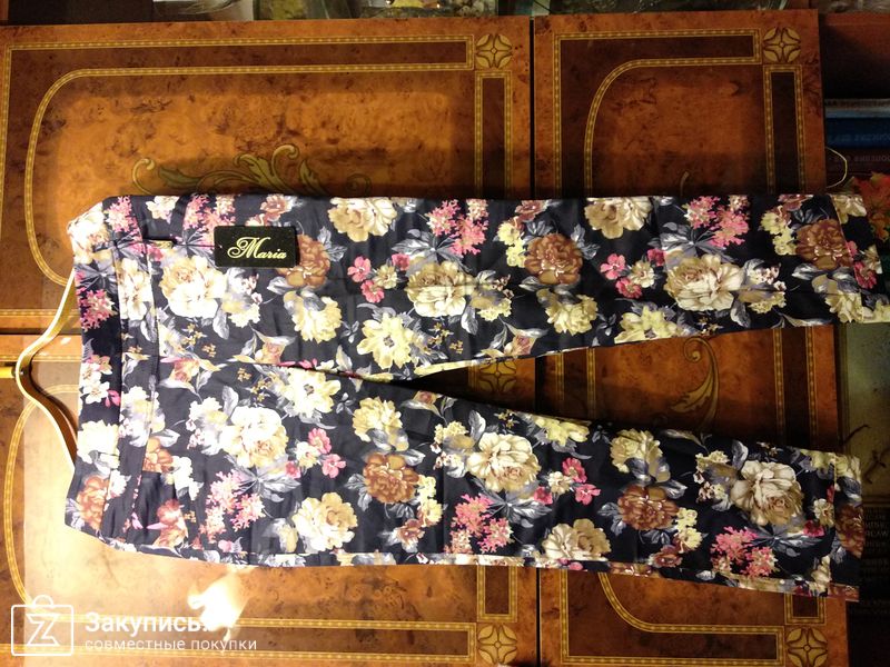 Брюки с цветами синие - тоже стрейч , и тоже достаточно плотная ткань . Мне очень понравилась расцветка - цветы на глубоком синем фоне .