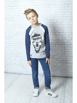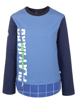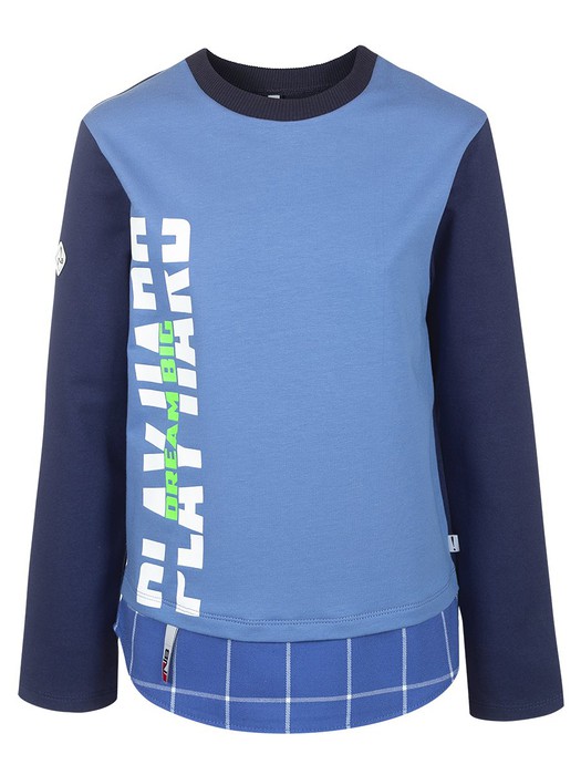 Свитшот для мальчика из футера и ткани в клетку/синий