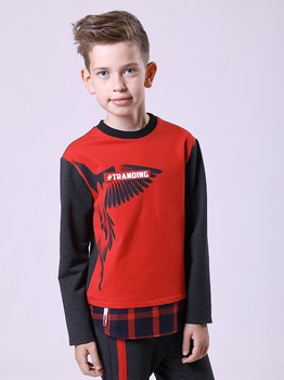 Свитшот для мальчика из футера и ткани в клетку