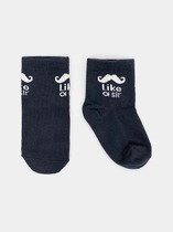 Рис. 356. Гладкий детский носок с рисунком в виде усов и надписи Like a sir на паголенке— Описание у На сайте поставщика