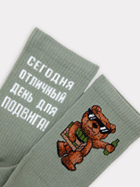 Рис.2674 Мужской носок с высоким плотным бортом и рисунком в виде шишки с надписью "ВАЖНАЯ ШИШКА".— Описание у На сайте поставщика